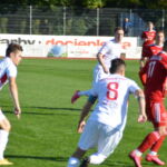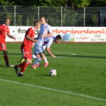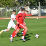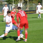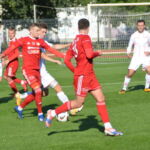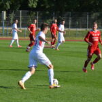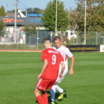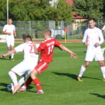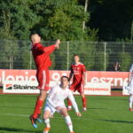 Biało-czerwoni od początku spotkania narzucili swój szybki rytm grania, dominując wydarzenia na boisku. W 19 minucie Mikołaj Marciniak umieścił piłkę w siatce po dośrodkowaniu z rzutu rożnego Tomasza Kowalskiego. Kilka minut w wcześniej podobnej sytuacji znalazł się Szymon Celmer, ale brakło odpowiedniego wykończenia.