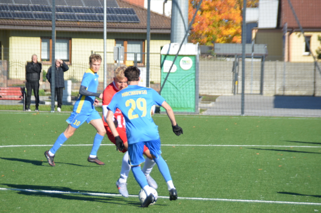 Podopieczni trenera Tomasza Dolaty już po 10 minutach zaakcentowali swoją przewagę obejmując prowadzenie 2:0. Spotkanie pod pełną kontrolą biało-czerwonych zakończyło się ostatecznie zwycięstwem 7:0. Duże gratulacje dla naszej młodzieży, a już za tydzień wyjazdowy mecz na szczycie tabeli z OKS 1926 Ostrów.